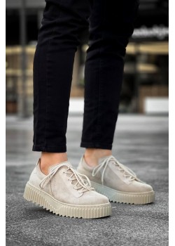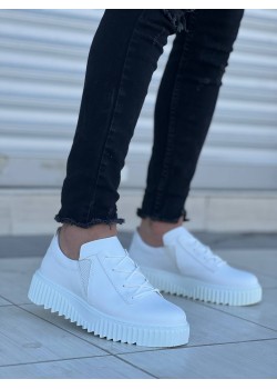 KB-X502 Kuback Beyaz Cilt Yüksek Beyaz Taban Bağcık Detaylı Lastikli Günlük Erkek Ayakkabı