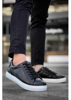 KB-BX1 Kuback Siyah Cilt Yüksek Beyaz Taban Günlük Erkek Ayakkabı