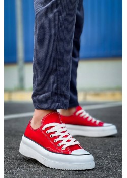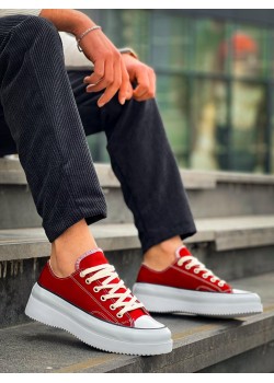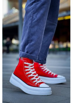 KB-CX-3 Kuback Kısa Kırmızı Keten Beyaz Yüksek Taban Spor Ayakkabı