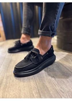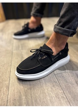 Knack Yüksek Taban Mevsimlik Süet Ayakkabı 009 Siyah (Beyaz Taban)