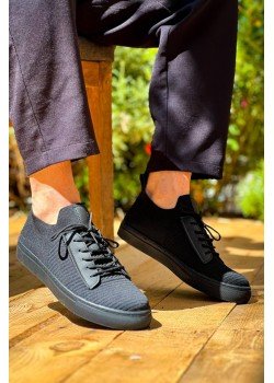 KB-110 Kuback BACK Siyah Triko Yüksek Taban Bağcıklı Günlük Erkek Ayakkabı