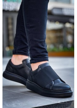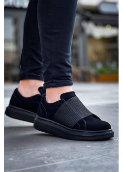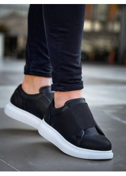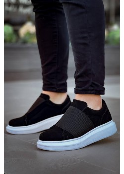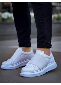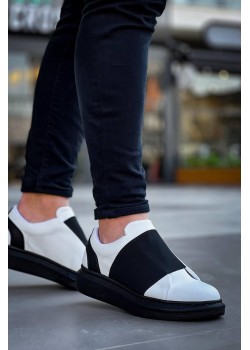 KB-040 Kuback Beyaz Cilt Siyah Yüksek Taban Lastikli Günlük Erkek Ayakkabı