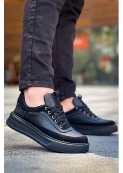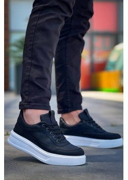 KB-006 Kuback Siyah Cilt Siyah Yüksek Taban Bağcıklı Günlük Erkek Ayakkabı