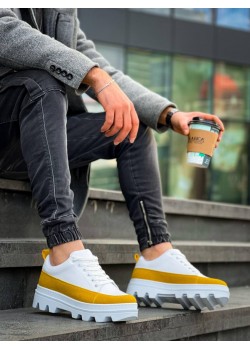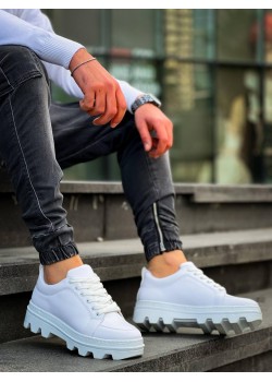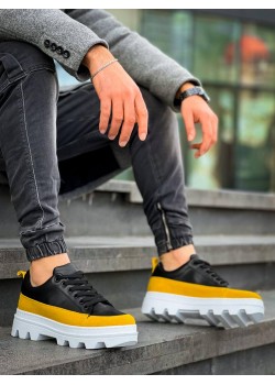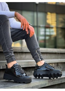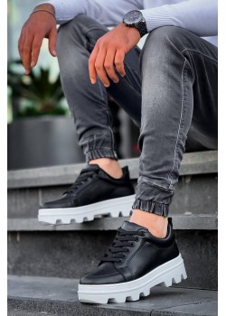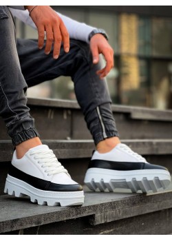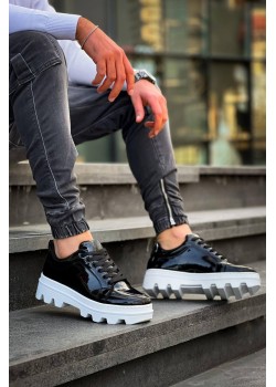 KB-056 Kuback Siyah Cilt Beyaz Yüksek Taban Günlük Spor Ayakkabı